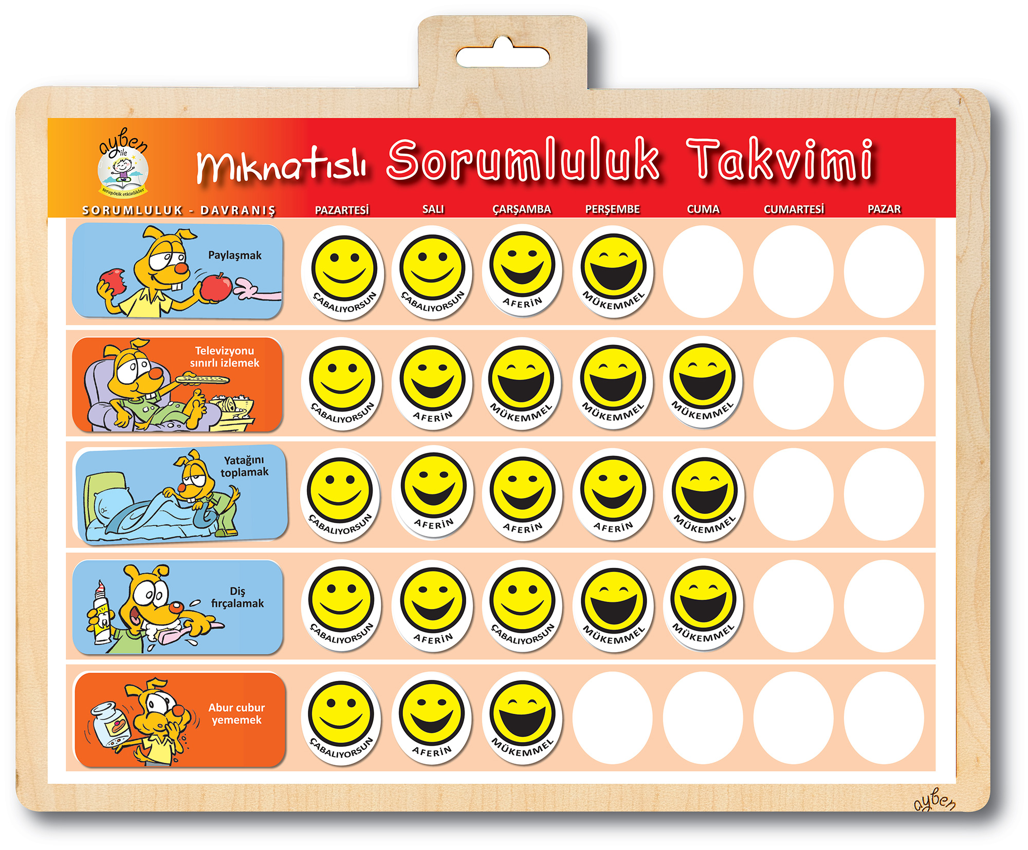 8- Özellikle okul öncesi çocuklar için ödül çizelgesi, sorumlulukları öğreten takvimden faydalanabilirsiniz. Birçok çocuk ödül çizelgelerinden ve övgüden çok faydalanır ve sorumluluklarını daha çabuk benimser.